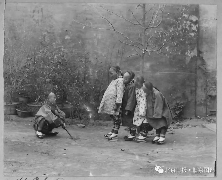 何德兰特别调查了老北京孩子们所玩的游戏,他发现这是“一座迄今为止还没有被人发现的宝藏”,游戏的种类多到无法统计到底有多少种。孩子们凑在胡同口,只用木棍、石块、头顶的辫子等简单的道具,甚至什么也不用,都可以玩得兴奋不已、笑声不断。